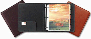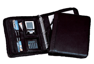 Features :- Top-grain Napa leather. Zippered closure. 1" ring binder. Gusseted file pocket. Two additional pockets, one with zipper closure. Pockets with PDA and cell phone. Three pen loops. Reversible pad section. Holds 8 1/2" x 11" and A4 pads.